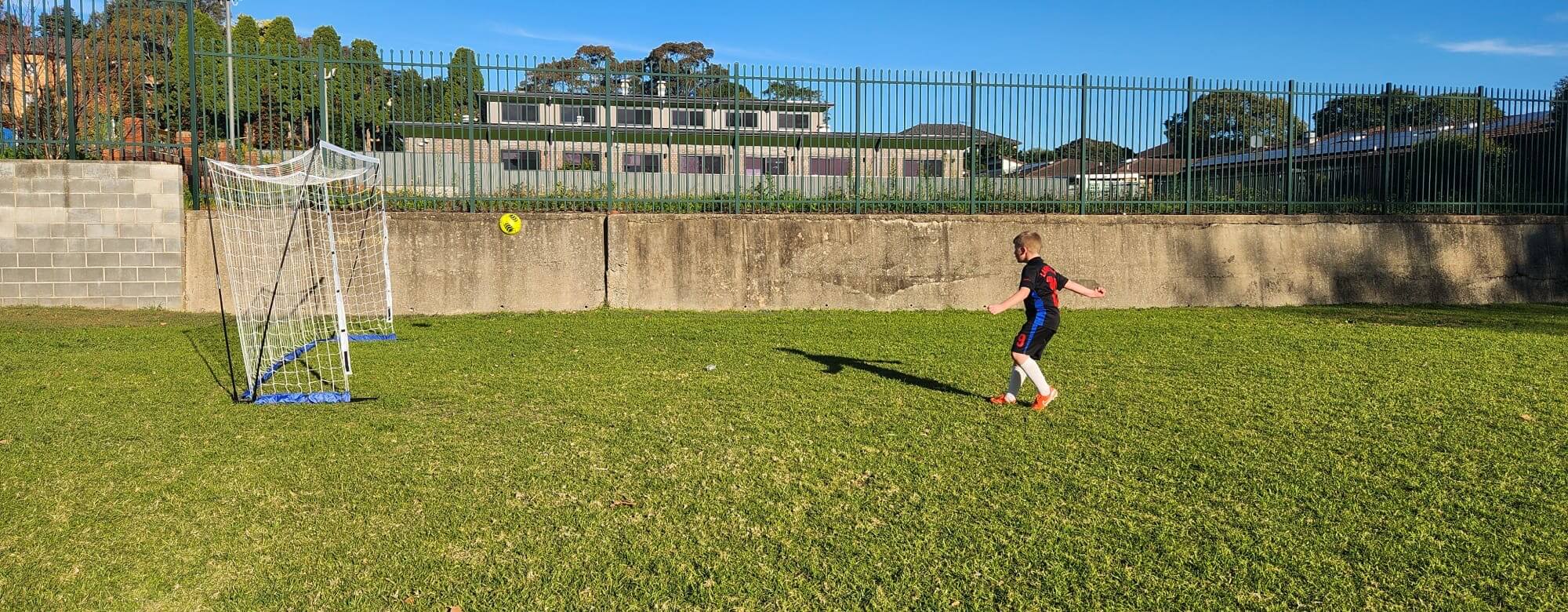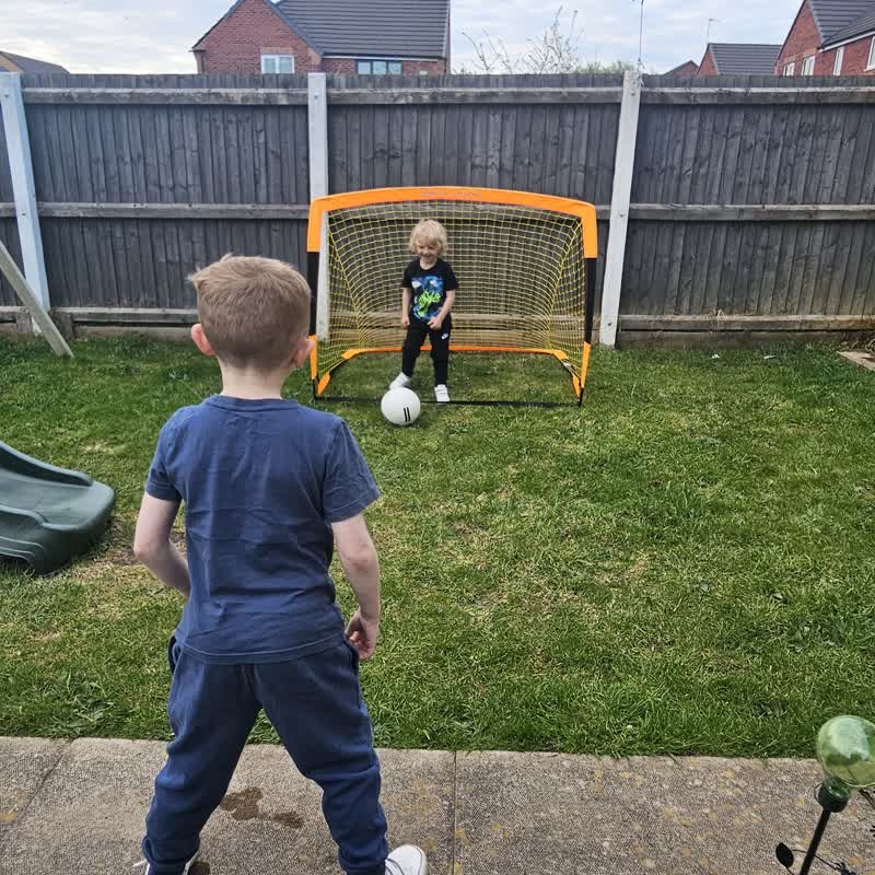Simple drill: Roll the ball gently and let your child kick it in. Celebrate with high fives!